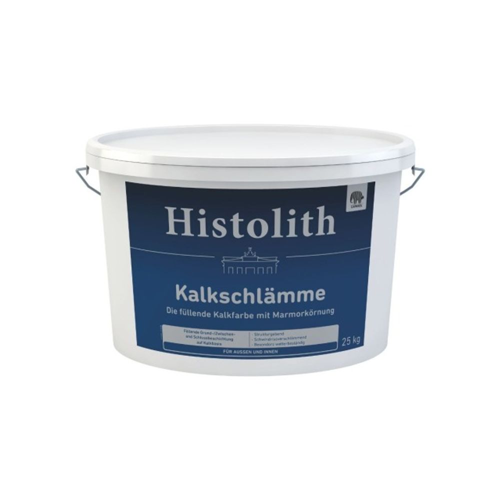 Kalkschlämme zum Füllen von Schwindrissen und zum Egalisieren der Oberfläche von mineralischen Untergründen. Geeignet besonders für die Beschichtung von kalkreichen Putzen sowie für die Renovierung von saugfähigen, mineralischen Altanstrichen. In Verbindung mit Histolith Schlämmquarz auch zur Spachtelung des Untergrundes.