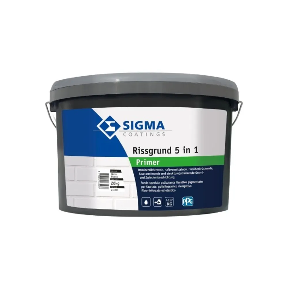 Sigma Rissgrund 5 in 1 ist die ideale Haftbrücke für alle elastischen Untergründe, faserarmiert. Dieser ist hoch wasserdampfdurchlässig, hat ein sehr gutes Füll- und Deckvermögen, außerdem kann man diese überstreichen.