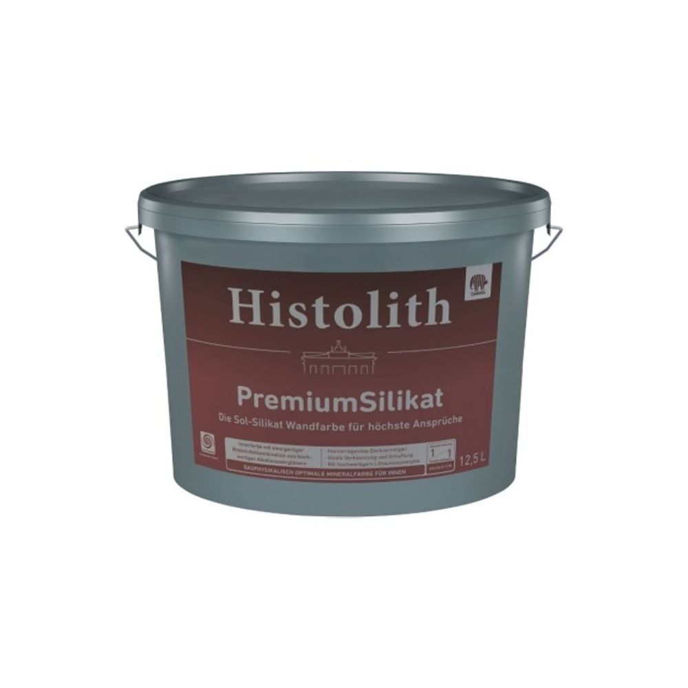 Histolith PremiumSilikat ist eine besonders hochwertige Sol-Silikat-Innenfarbe. Die spezielle mineralische Bindemittelkombination ermöglicht hervorragende Verarbeitungseigenschaften und ein breites Anwendungsgebiet bei besten Ergebnissen. Geeignet für besonders wertige und stumpfmatte Anstriche im Innenbereich.
