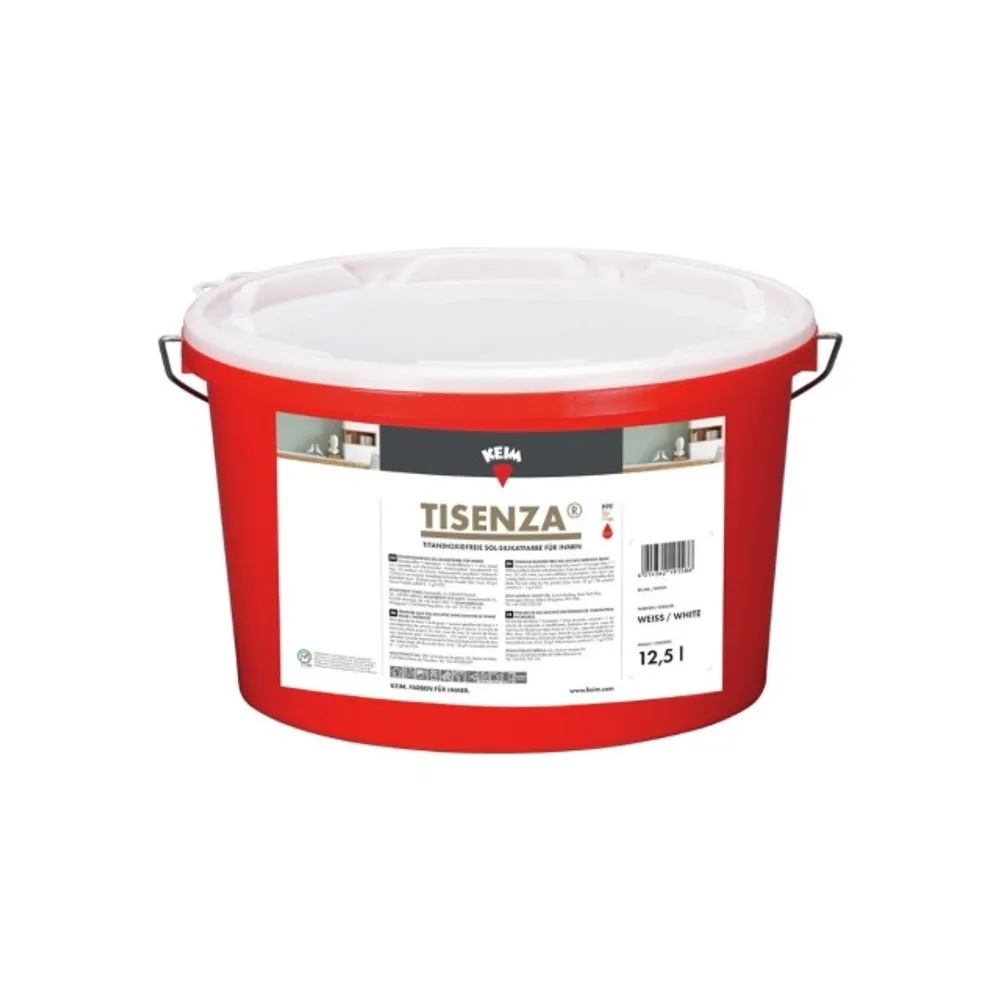 KEIM Tisenza ist eine titandioxidfreie Innenwandfarbe auf Sol-Silikatbasis nach DIN EN 13 300, die Anstriche mit besonderer Farbtiefe und Plastizität ergibt.