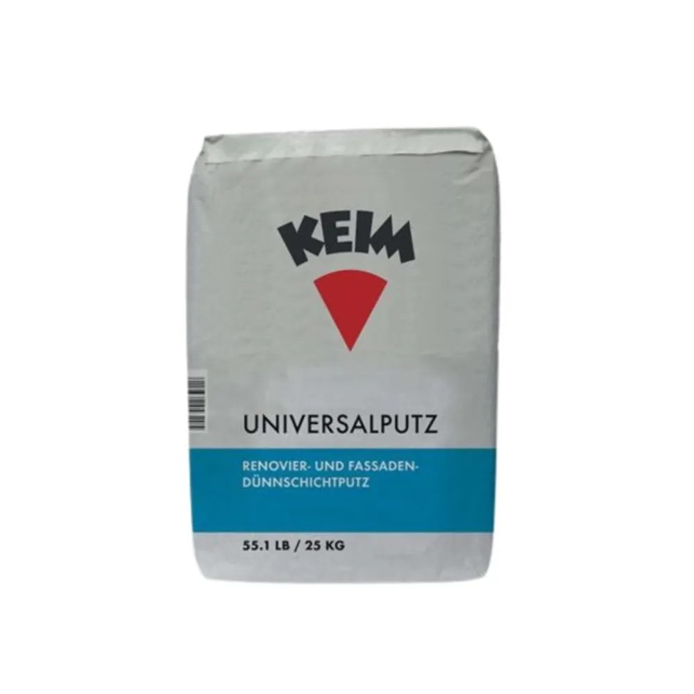 Keim Uniputz ist ein Renovier- und Fassadendünnschichtputz auf Kalkzementbasis mit organischen Zusätzen und Faserarmierung (Normalputzmörtel nach DIN EN 998-1). Keim Universalputz-Fein entspricht der Mörtelkategorie CS III(P II nach DIN 18550). In Kombination mit Keim Silikatfarben ergibt sich ein aufeinander abgestimmtes Putz/Anstrichsystem.