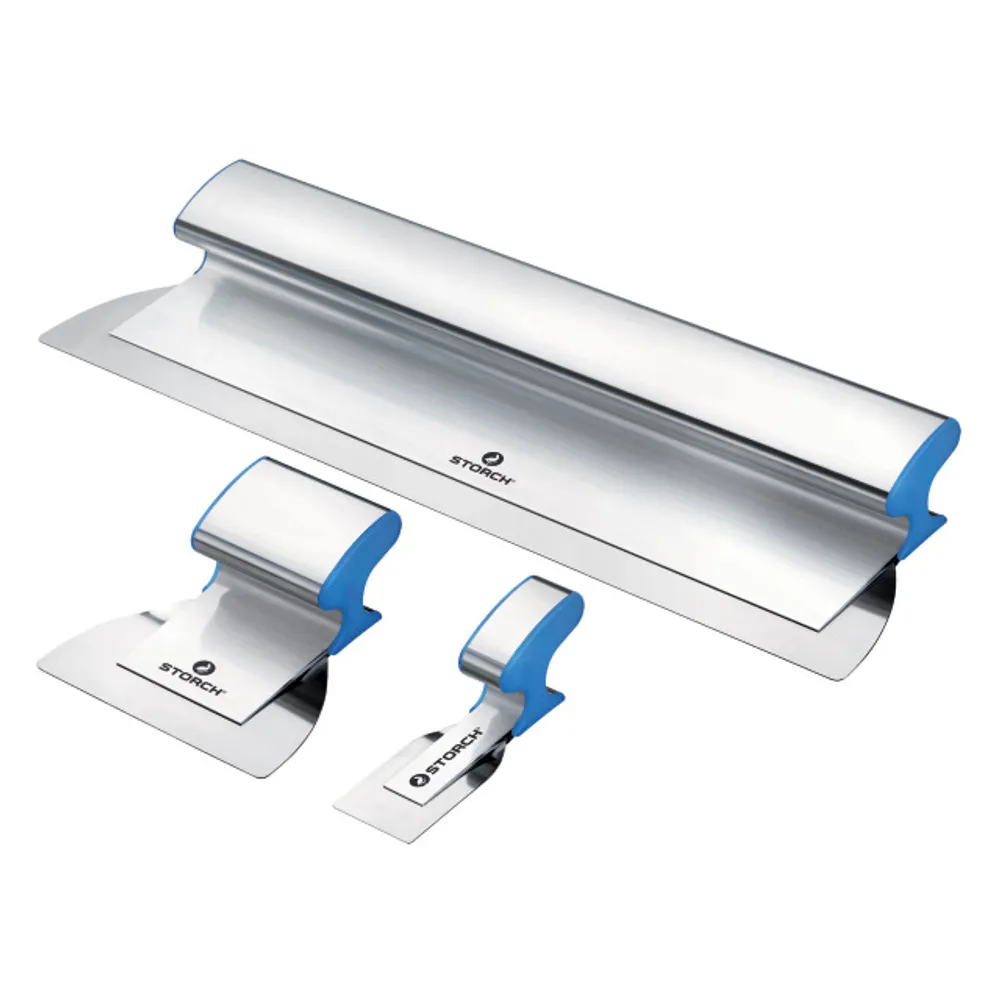 Abriebfestes, sehr flexibles 0,3 mm Edelstahlblatt mit abgerundeten Ecken. Ideal für extrem glattes Abziehen mit sehr geringer Nacharbeit von Spritz- und Feinspachtel für Qualitätsstufen bis Q4.